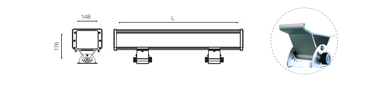 ·Tight waterproof structure ·International standard DMX512 control ·IP65 waterproof connectors ·Detachable bracket for easy installation ·Optional Optic LENs